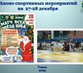 Городские соревнования по дзюдо на призы Деда Мороза. Начало мероприятия: 09.00. Место проведения: г. Томск, Спортивный клуб «Сибирь», ул. Шевченко, 40/2.